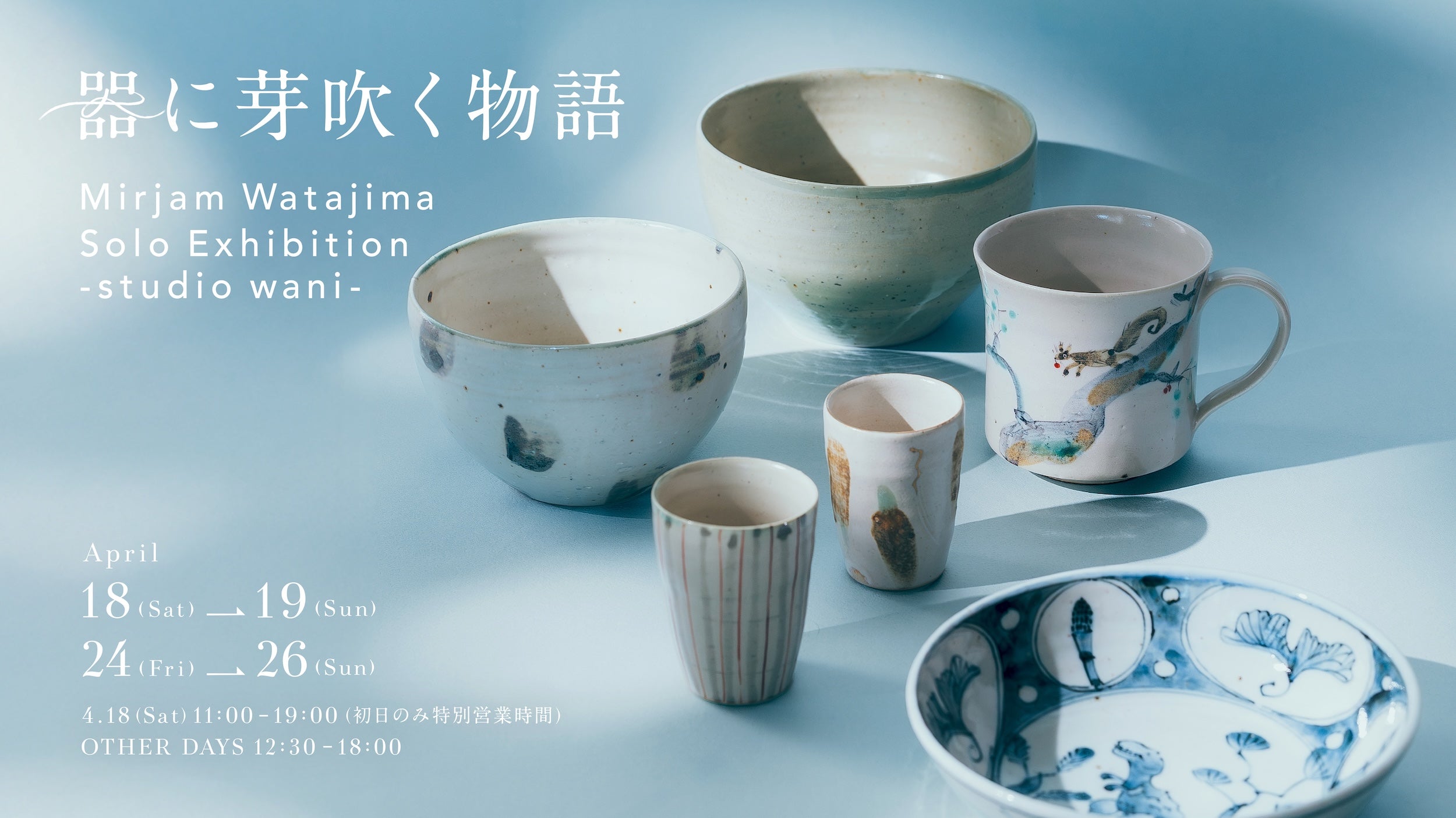 2026年4月18日(土)より、長崎県波佐見町にて活動する綿島ミリアムさんの個展『器に芽吹く物語』を開催いたします。