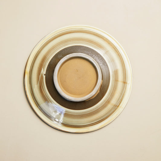 小鹿田焼 黒木昌伸窯 黒木昌伸 7寸皿【指描き・三彩】