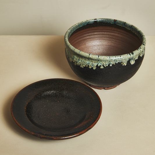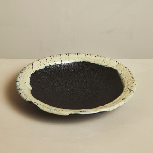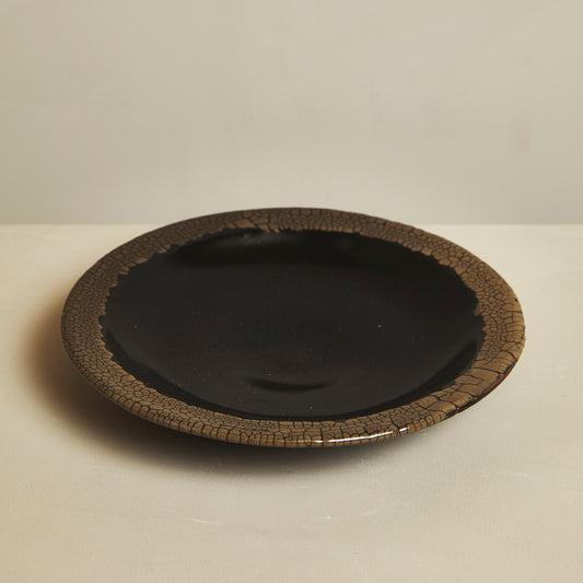 龍門司焼 川原竜平 7寸皿 【黒蛇蝎 掛けわけ】