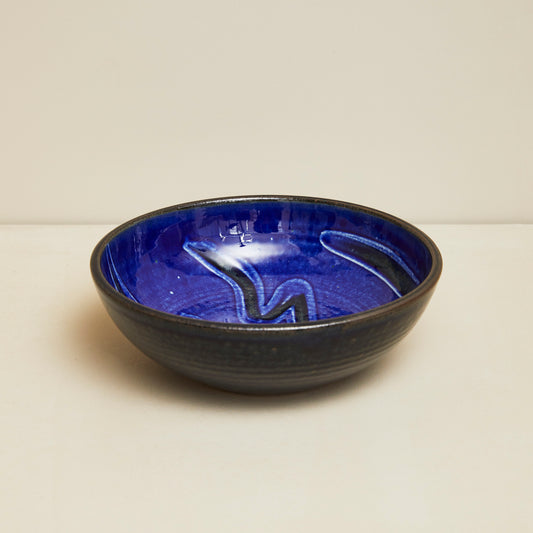 小石原焼 太田哲三窯 6寸鉢【指描き・青】