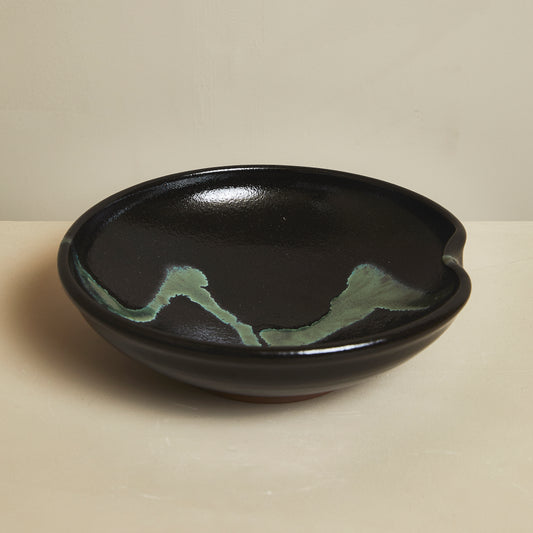 1688年の開窯以来、薩摩焼5系統の一つとして続いている窯。共同窯方式での焼物作りから、戦後に龍門司焼企業組合となり、現在は川原史郎さんと、代表理事で息子の竜平さんやご親族など数名で、地元の原料と代々受け継いできた製法で日用品を作り続けている。
