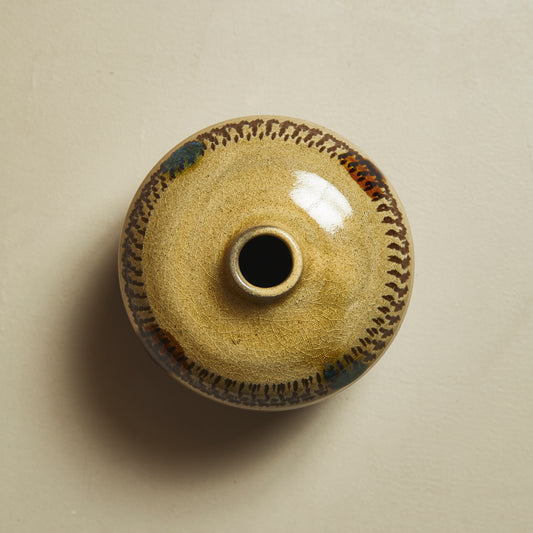 1949 年⽣まれ。⿓⾨司焼の陶⼯であった⽗の元で育ち、三重県伊勢での修⾏ののち、 ⿓⾨司焼を受け継ぐ。厚⽣労働⼤⾂卓越技能賞「現代の名⼯」受賞、伝統的⼯芸品産業 振興協会「伝統⼯芸⼠」認定。瑞宝単光章受章。