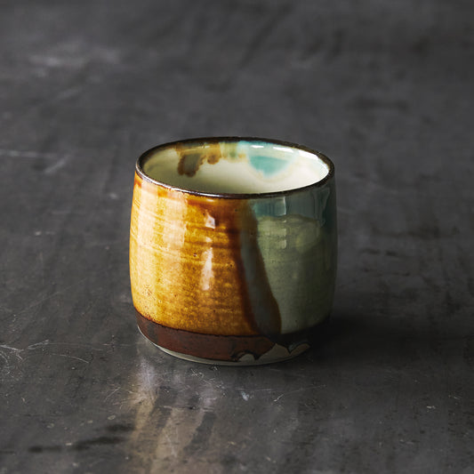 売り切れ小鹿田焼(坂本拓磨)マグ 緑飴 掛けわけ