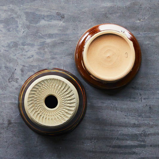 小鹿田焼 坂本拓磨 植木鉢4号(皿付き)【指描き】