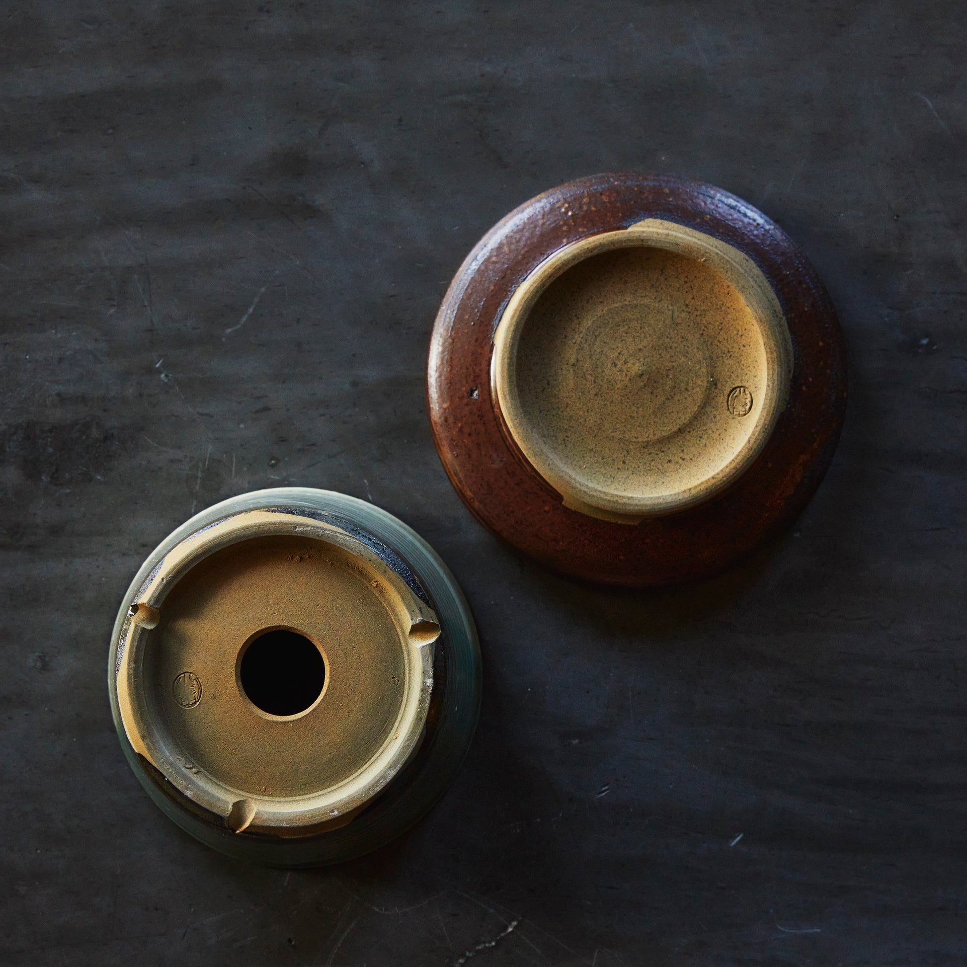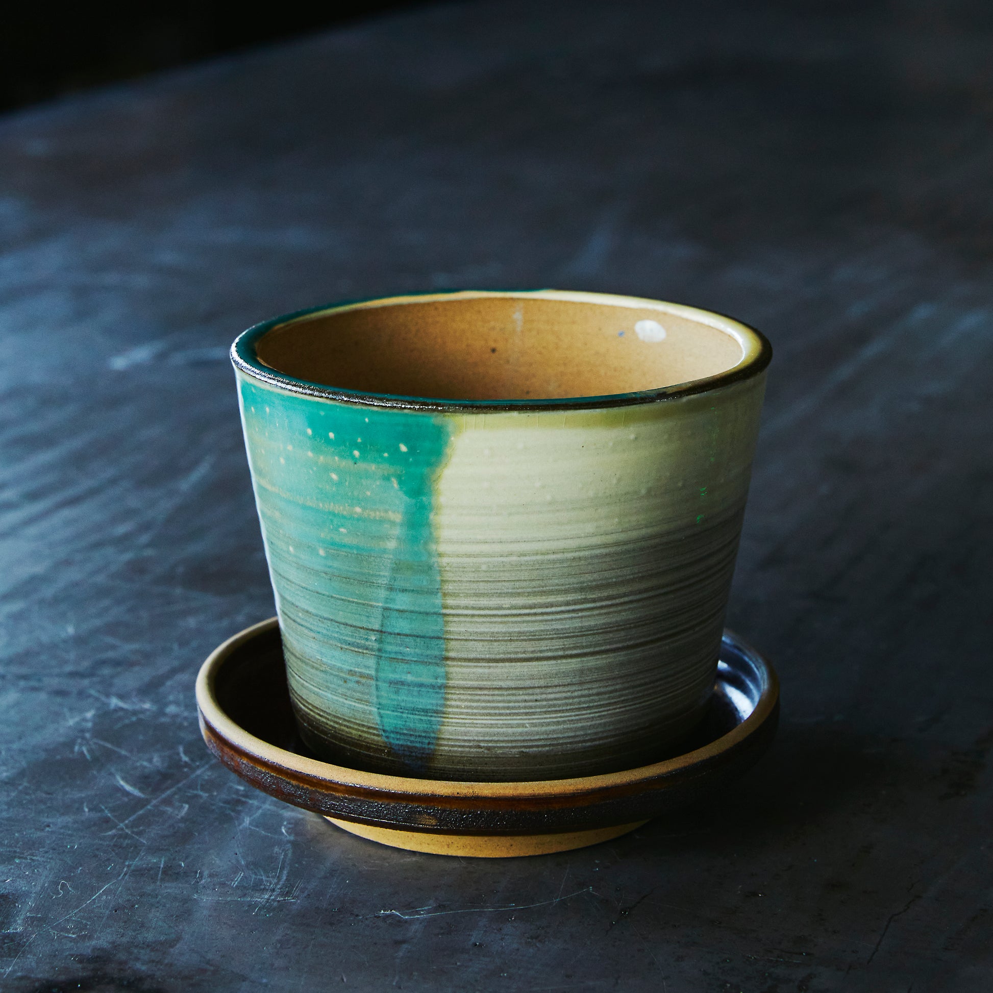 大分県日田市で生まれた伝統工芸品、小鹿田焼。窯元「坂本浩二窯」で作られたオーダーメイドの植木鉢と受け皿のセットです。