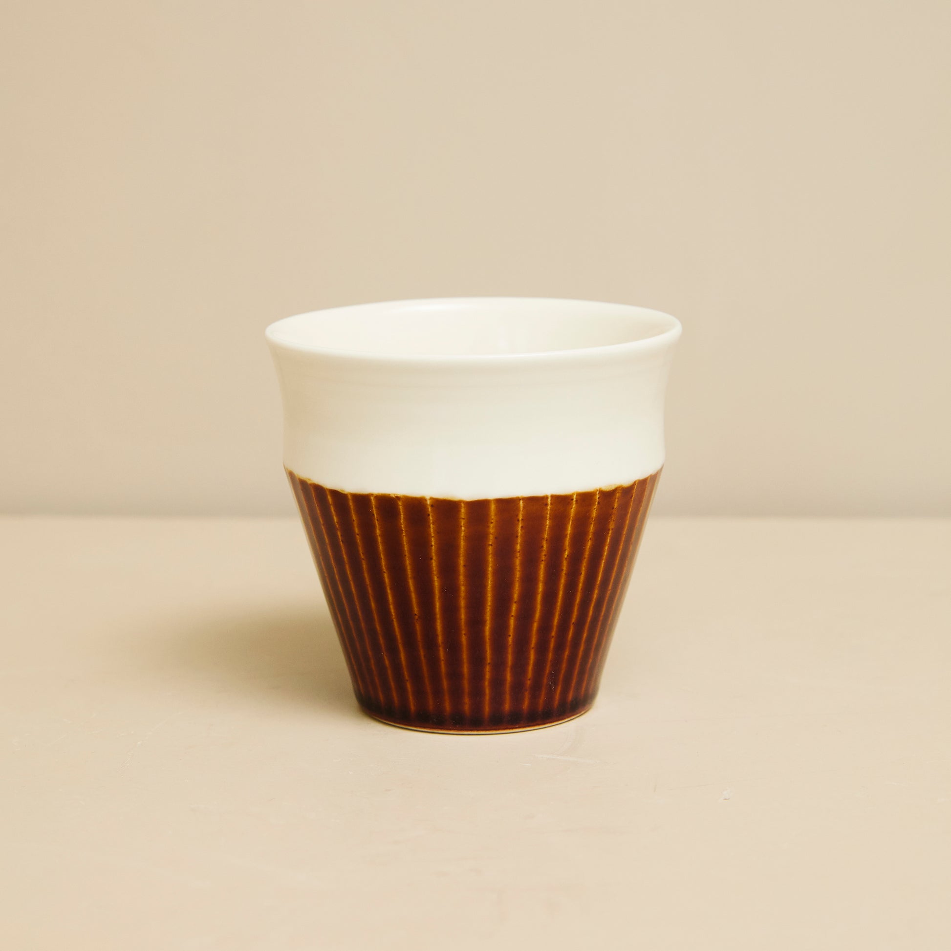 飲み口が少し反っていることで飲みやすく、口あたりもなめらか。「しのぎ」を下半分にあしらうことで、ハンドルがなくても持ちやすく設計されています。